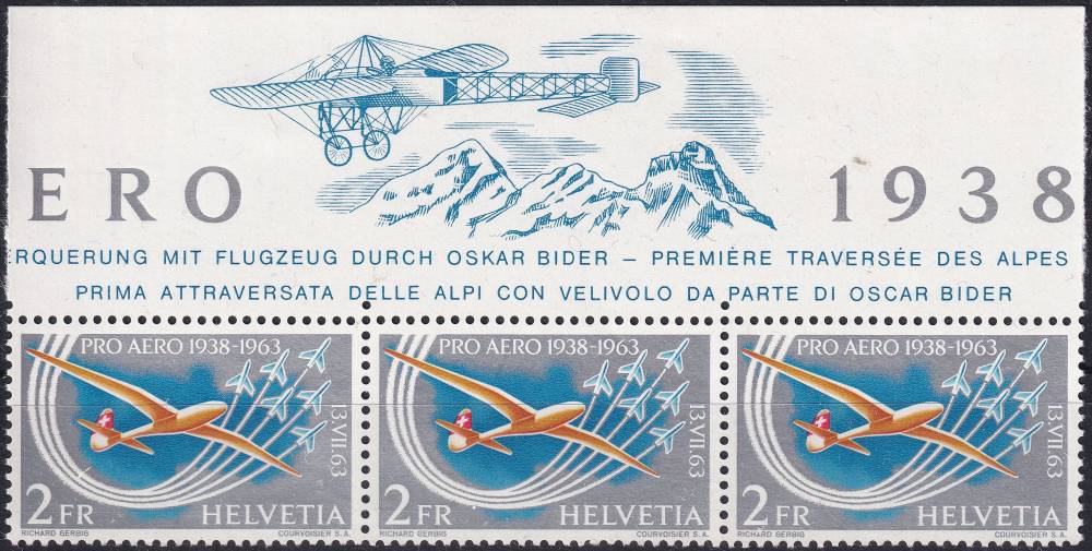 1963, Švýcarsko, 0780, Letecká známka: "Pro-Aero"-Pamětní poštovní let 1963 ✶✶ ⊟ o H