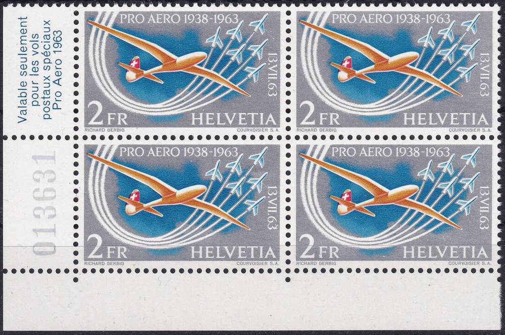 1963, Švýcarsko, 0780č, Letecká známka: "Pro-Aero"-Pamětní poštovní let 1963 ✶✶ ⊞ L D