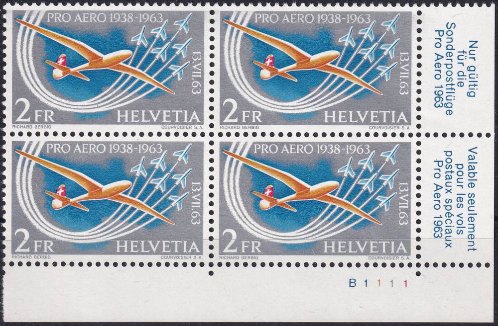 1963, Švýcarsko, 0780DČ, Letecká známka: "Pro-Aero"-Pamětní poštovní let 1963 ✶✶ ⊞ P D