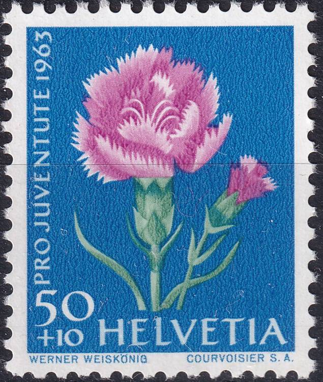 1963, Švýcarsko, 0790y, "Pro Juventute": Luční a zahradní květiny - Dianthus Caryophyilus-caryophylia-ceae ✶✶