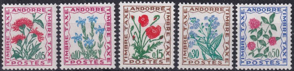 1964/1965, Andorra (Francouzská pošta), DL46/50, Doplatní známky: Květiny ✶✶