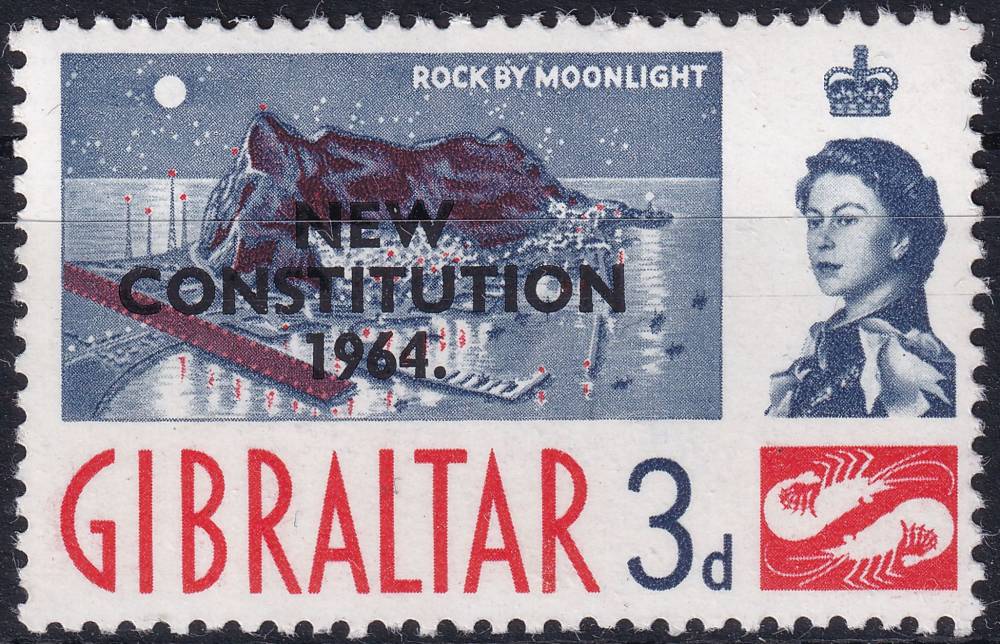 1964, Gibraltar, 0167, Nová Ústava: Skála na Gibraltaru v měsíčním svitu ✶✶