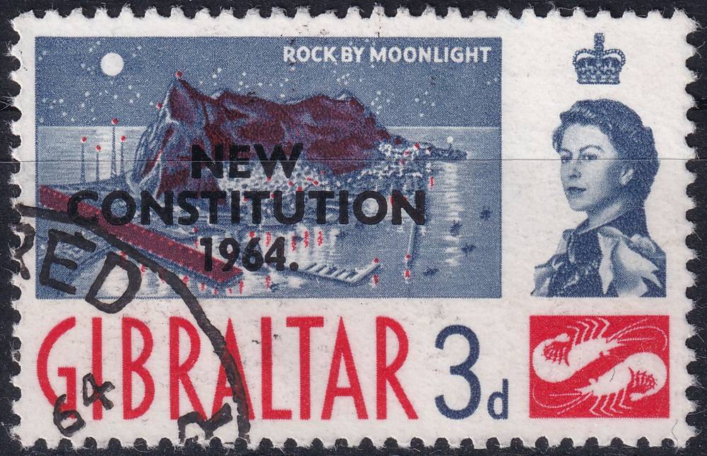 1964, Gibraltar, 0167, Nová Ústava: Skála na Gibraltaru v měsíčním svitu ⊙