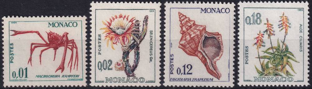 1964, Monako, 0773/0776, Výplatní známky: Fauna a flóra ✶✶