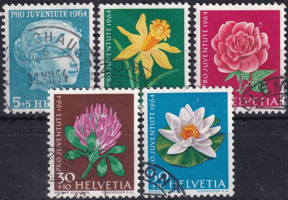 1964, Švýcarsko, 0803/0807, "Pro Juventute": Hlava dívky; Luční a zahradní květiny ⊙