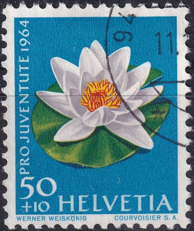 1964, Švýcarsko, 0807, "Pro Juventute": Luční a zahradní květiny - Nymphaea alba ⊙