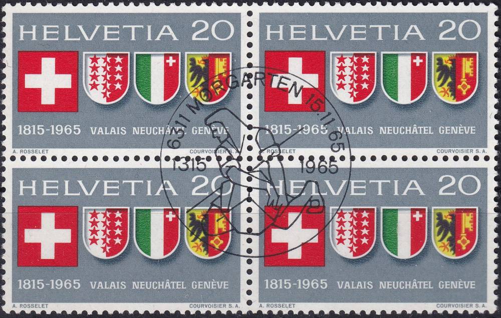 1965, Švýcarsko, 0819, 150. výročí vstupu kantonů Wallis, Neuenburg a Ženeva do Spříseženství ⊙ ⊞