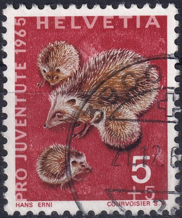 1965, Švýcarsko, 0826, "Pro Juventute": Divoká zvířata - Erinaceus europaeus ⊙