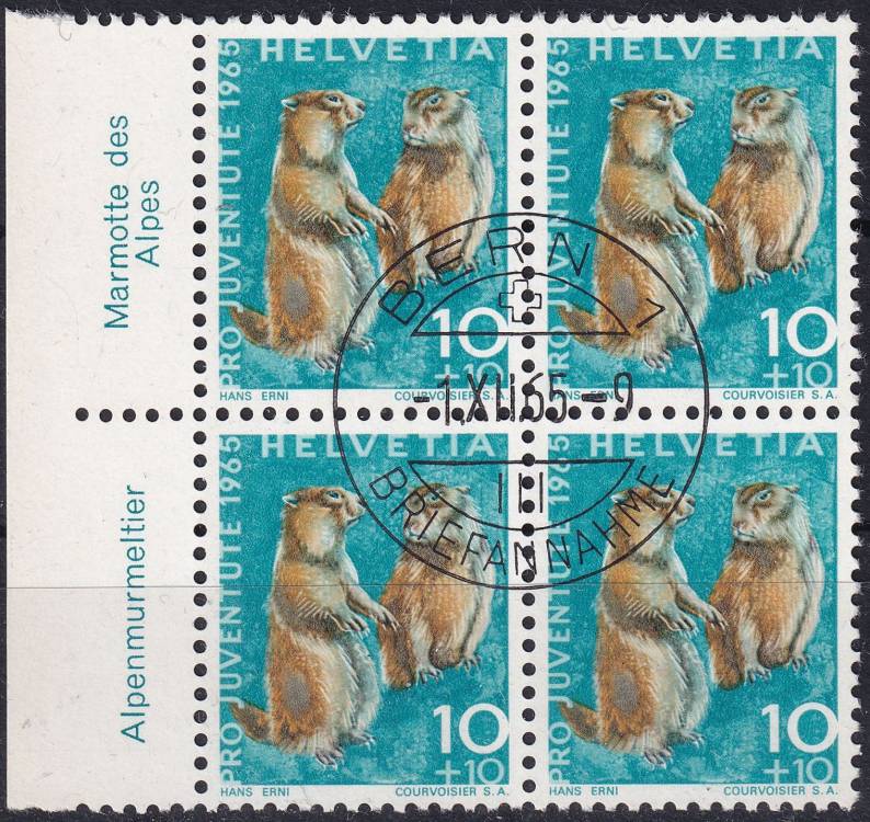 1965, Švýcarsko, 0827, "Pro Juventute": Divoká zvířata - Marmota marmota ⊙ ⊞ o L