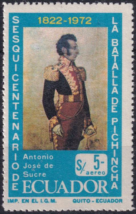 1972, Ekvádor, 1571, Letecká známka: 150. výročí bitvy u hory Pinchincha (I): Generálové osvoboditele Simona Bolivara - António José de Sucre ✶✶
