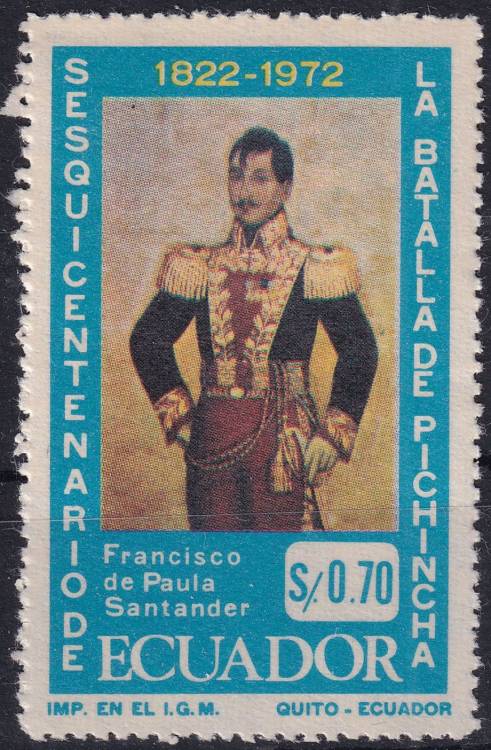 1972, Ekvádor, 1566, 150. výročí bitvy u hory Pinchincha (I): Generálové osvoboditele Simona Bolivara - Francisco de Paula Santander ✶✶