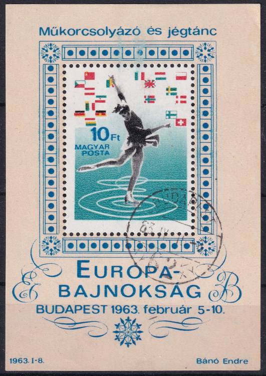 1963, Maďarsko, A037A, Mistrovství Evropy v krasobruslení v Budapešti ⊙