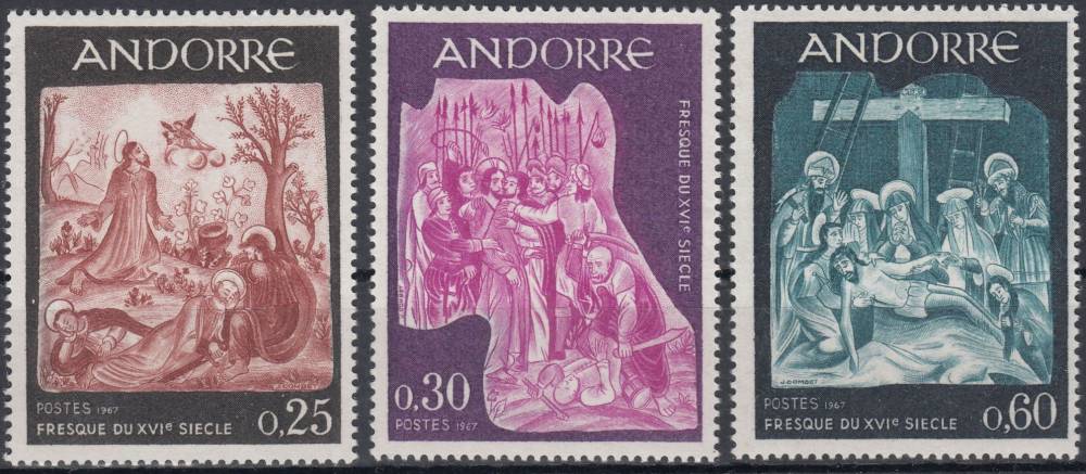 1967, Andorra (Francouzská pošta), 0204/0206, Fresky (I), **