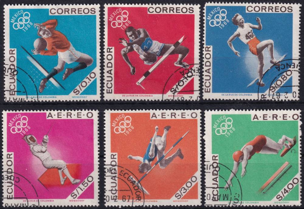 1967, Ekvádor, 1325/1330, Letní olympijské hry, Mexiko (II) (1968) ⊙