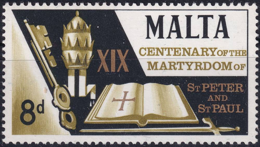 1967, Malta, 0354, 1900. výročí mučednické smrti Petra a Pavla: Klíče od nebe, Papežova tiára a Nový zákon ✶✶