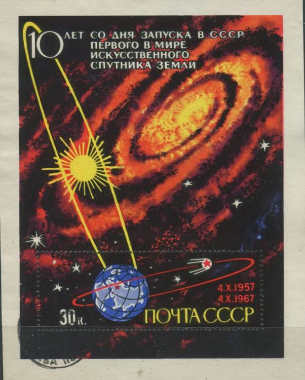 1967, SSSR, A046, 10. výročí startu prvních satelitů ⊙