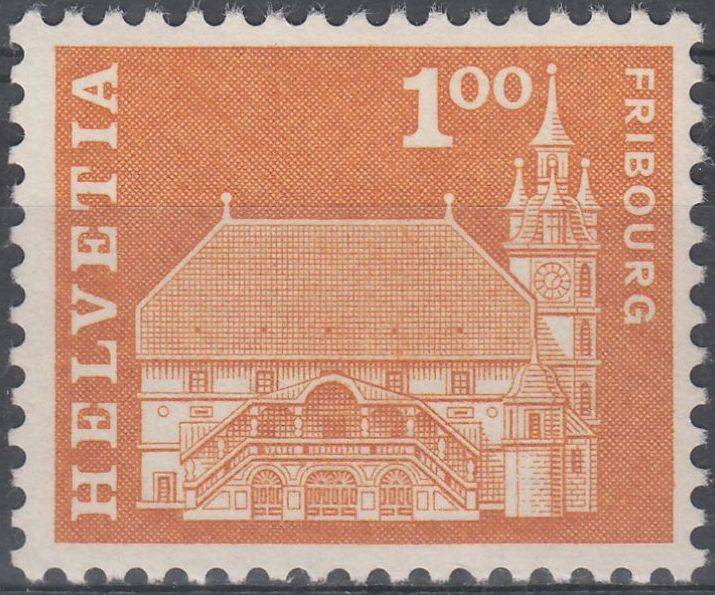 1967, Švýcarsko, 0710y, Výplatní známka: Kresby budov - Radnice ve Freiburgu **