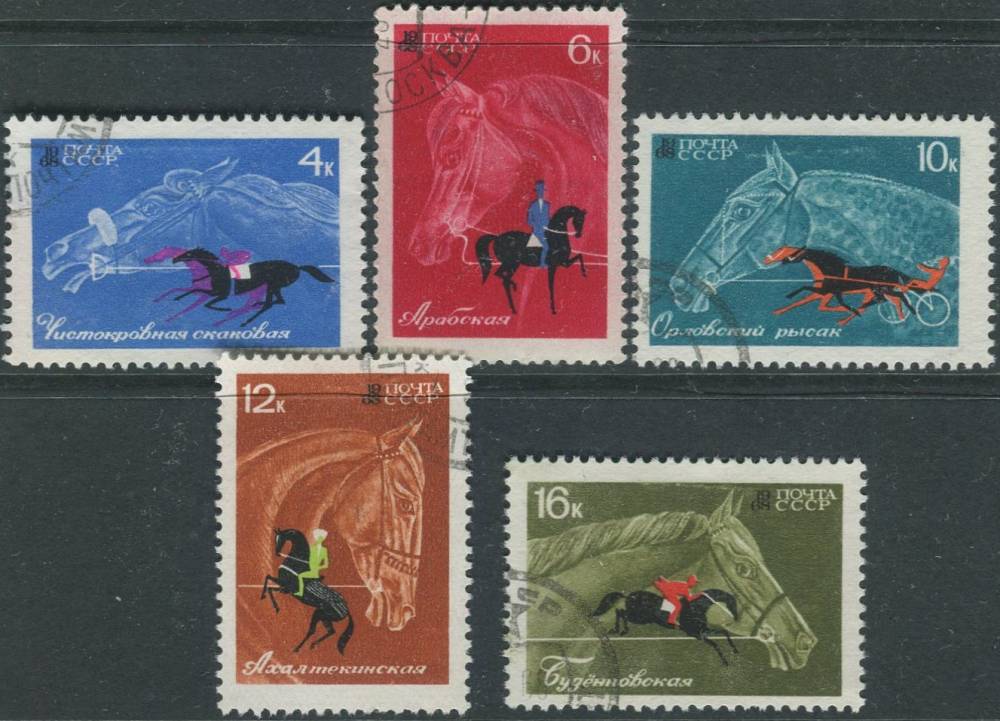1968, SSSR, 3458/3462, Chov koní a jezdectví ⊙