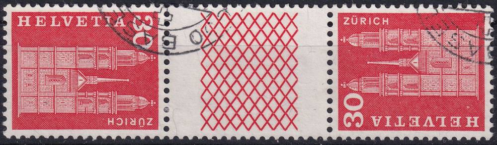 1968, Švýcarsko, 0701yGSTb, Výplatní známka: Malby budov - Velký dóm v Curychu ⊙