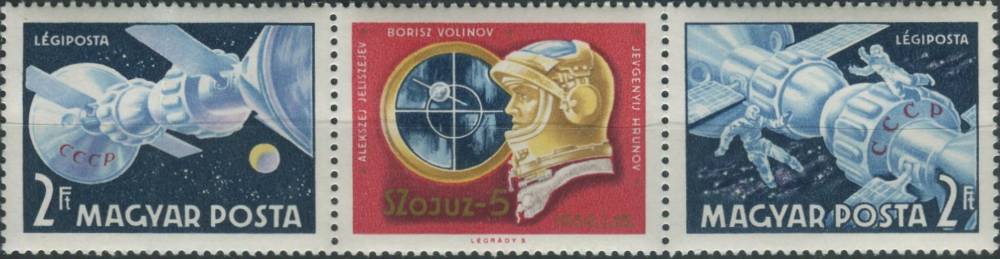1969, Maďarsko, 2492/2493SA, Letecké známky: Vesmírné kapsle Sojuz 4 a Sojuz 5 ∗∗