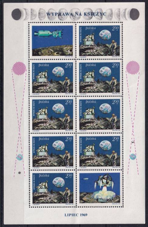 1969, Polsko, PL1940, První přistání na měsíci s lidskou posádkou - Apollo 11 ✶✶