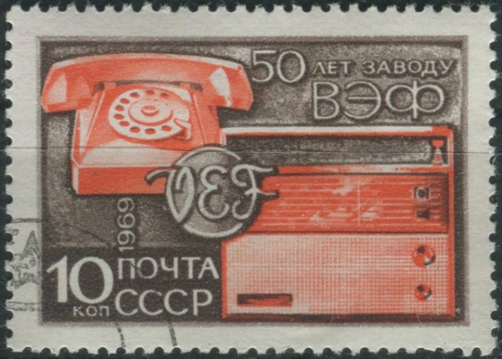 1969, SSSR, 3617, 50 let Závodu na Rádia a telefony VEF, Riga ⊙