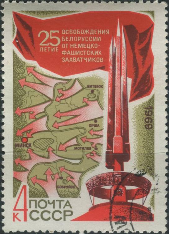 1969, SSSR, 3640, 25. výročí osvobození Běloruské SSR Rudou armádou ⊙