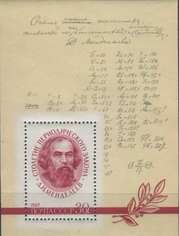 1969, SSSR, A056, 100. výročí objevení Periodického systému chemických prvků ∗∗