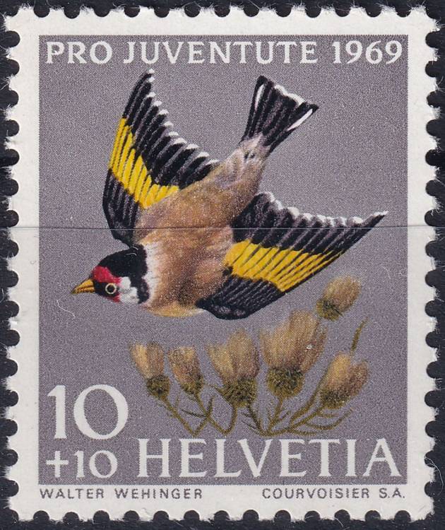 1969, Švýcarsko, 0914, "Pro Juventute": Ptáci - Carduelis carduelis ✶✶