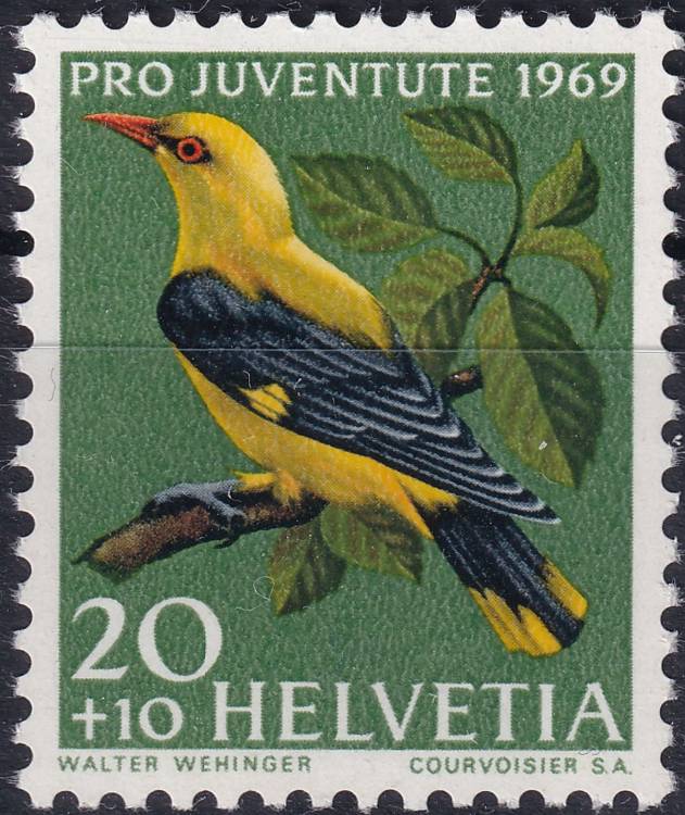 1969, Švýcarsko, 0915, "Pro Juventute": Ptáci - Oriolus oriolus ✶✶