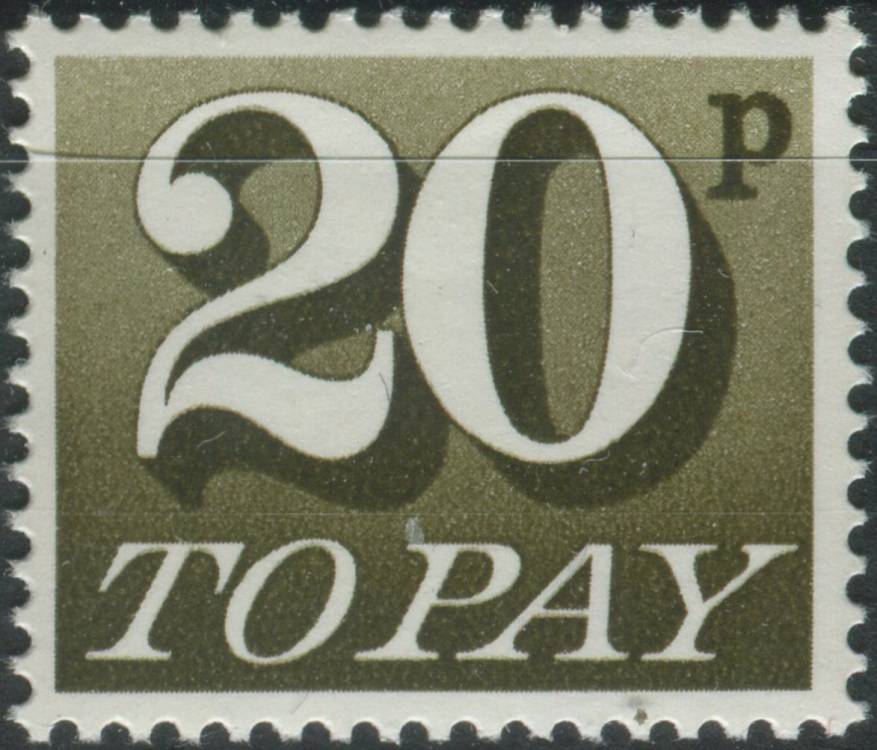1970, Anglie, DL077, Doplatní známka: Číslice ∗∗