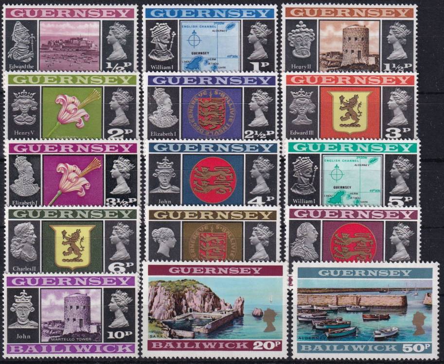 1971, Guernsey, 0039/0053, Výplatní známky: Pohledy a znaky ✶✶