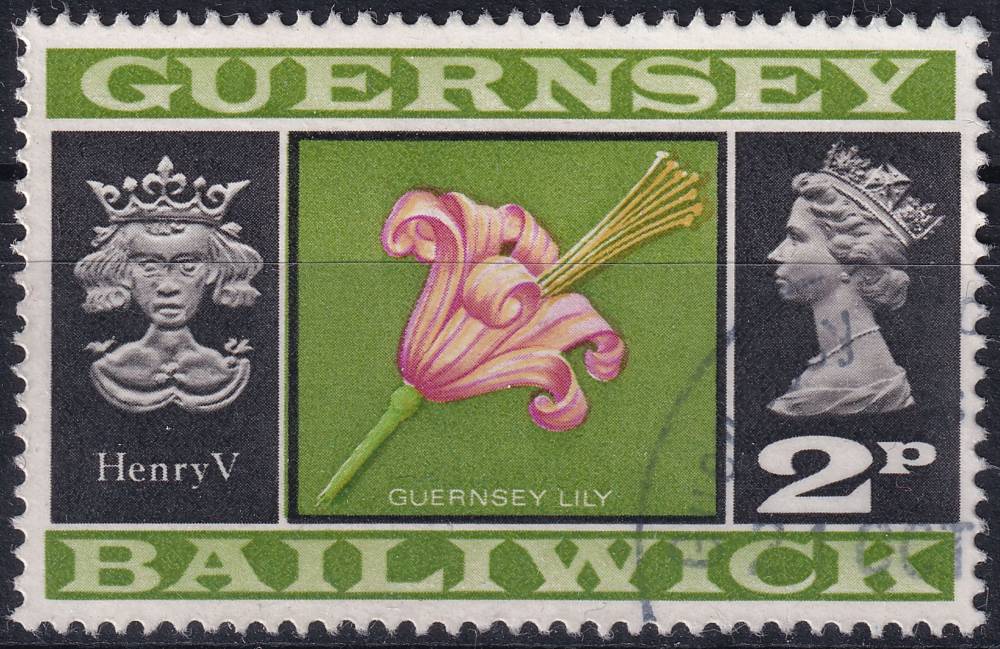 1971, Guernsey, 0042, Výplatní známka: Pohledy a znaky - Guernseyská lilie, Jindřich V. ⊙