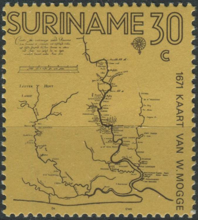 1971, Surinam, 0607, 300 let mapy od Willema Moggeho ∗∗