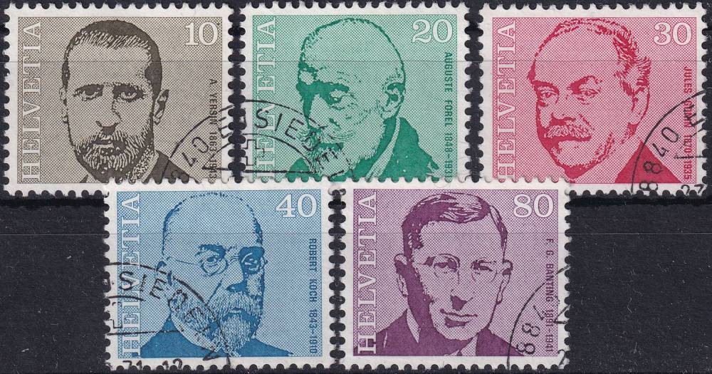 1971, Švýcarsko, 0955/0959, Portréty: Lékaři ⊙