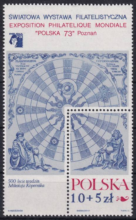 1972, Polsko, A052, Mezinárodní výstava poštovních známek POLSKA ´73, Poznaň, 500. výročí narození Mikuláše Koperníka ✶✶