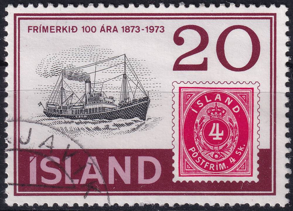 1973, Island, 0475, 100 let islandských poštovních známek: MiNr. 3, Poštovní loď "Esja" ⊙