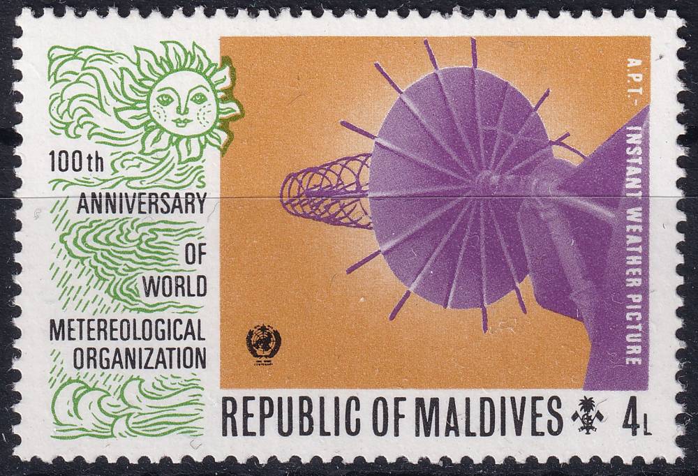 1973, Maledivy, 0482, 100 let Světové meteorologické společnosti (WMO): Stanice pro pozorování počasí ✶✶