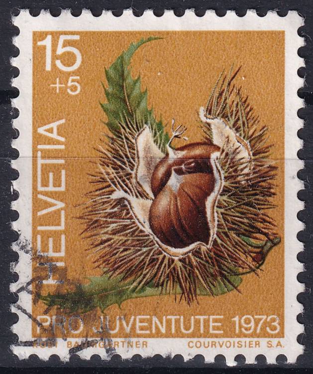 1973, Švýcarsko, 1013, „Pro Juventute“: Lesní plody - Castanea sativa ⊙