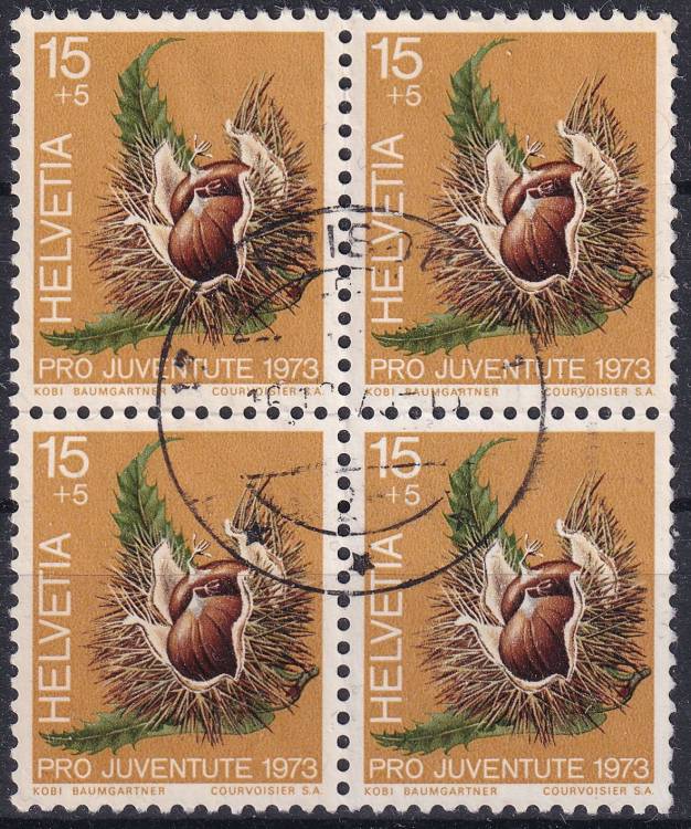 1973, Švýcarsko, 1013, "Pro Juventute": Lesní plody - Castanea sativa ⊙ ⊞