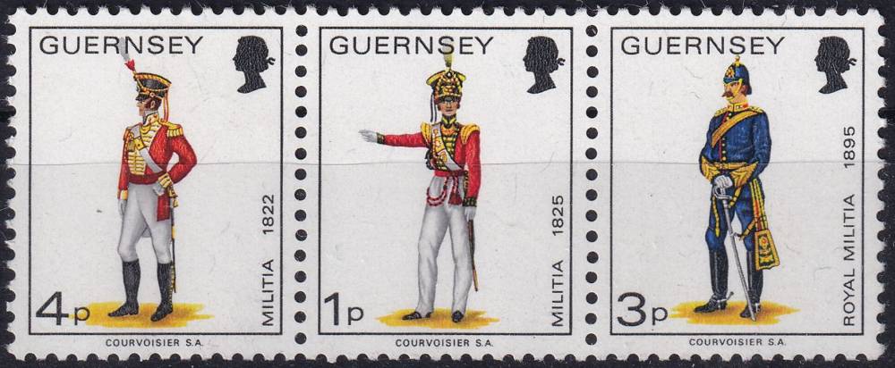1974, Guernsey, 0094+0098+0100St, Výplatní známky: Vojenské uniformy ✶✶