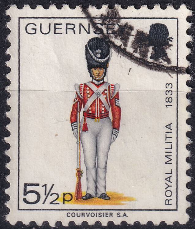 1974, Guernsey, 0101, Výplatní známka: Vojenské uniformy - Rotmistr ⊙