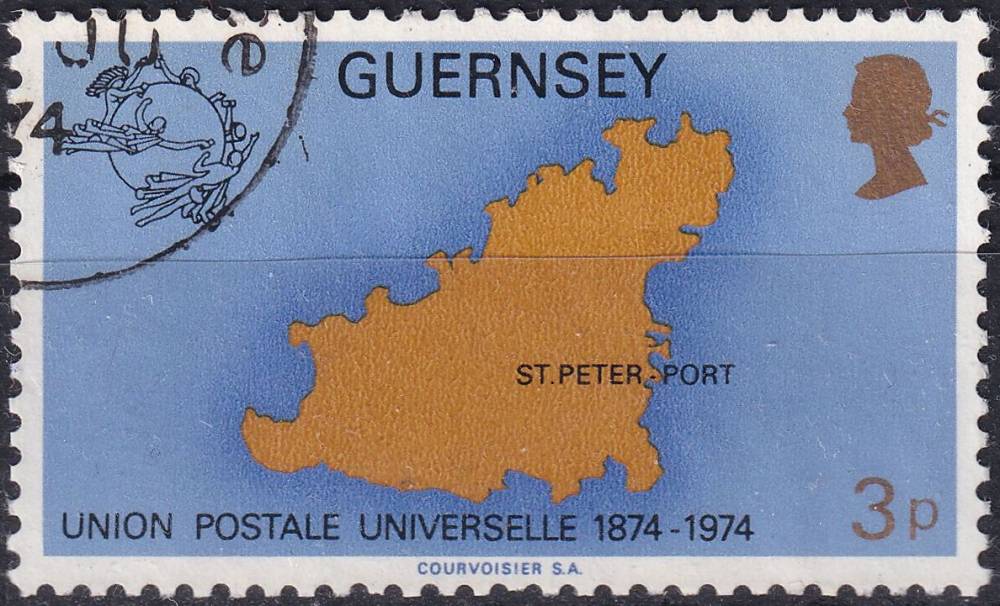 1974, Guernsey, 0107, 100 let Světové poštovní unie (UPU): Mapa ostrova Guernsey ⊙