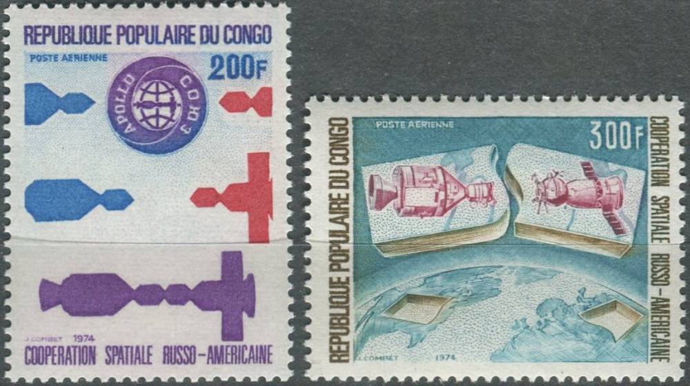 1974, Kongo (Brazzaville), 0417/0418, Letecké známky: Americko-sovětský vesmírný výzkum ∗∗