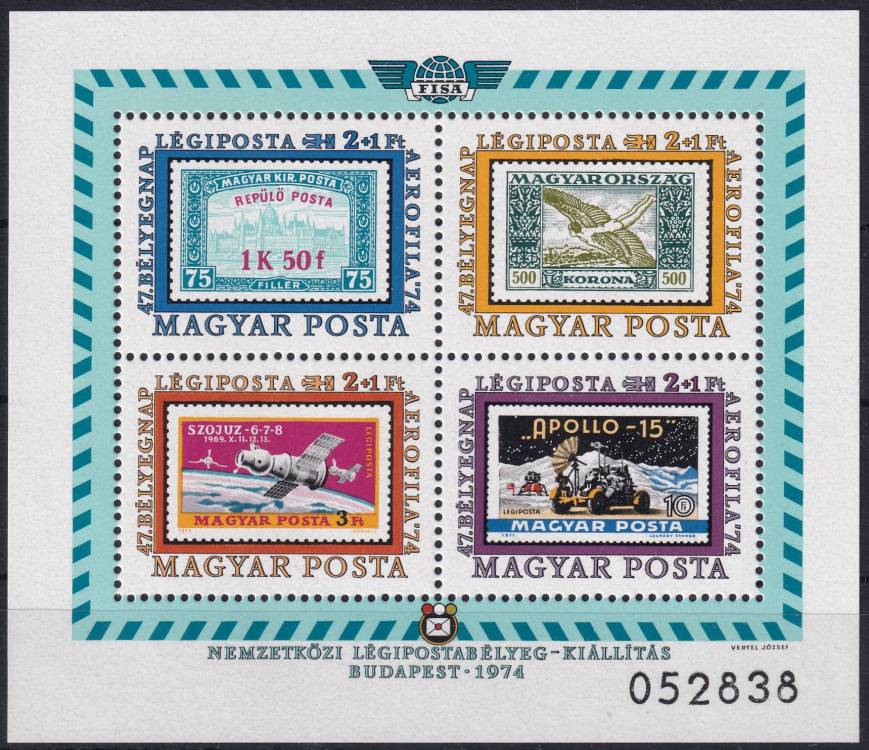 1974, Maďarsko, A109A, Letecký aršík: Mezinárodní výstava leteckých poštovních známek AEROFILA ´74, Budapešť ✶✶