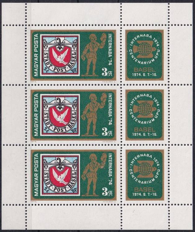 1974, Maďarsko, PL2956A, Mezinárodní výstava poštovních známek INTERNABA 1974 - Centenarium UPU, Basilej ✶✶