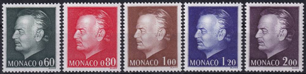 1974, Monako, 1143/1147, Výplatní známky: Kníže Rainier III. ✶✶