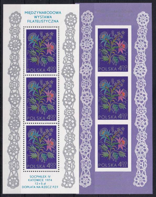 1974, Polsko, A057/058, Mezinárodní výstava poštovních známek SOCFILEX IV, Katowice: Výšivky ✶✶