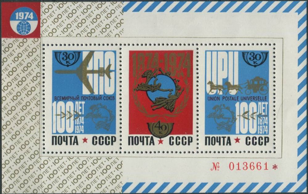 1974, SSSR, A098, 100 let Světové poštovní unie (UPU) ∗∗