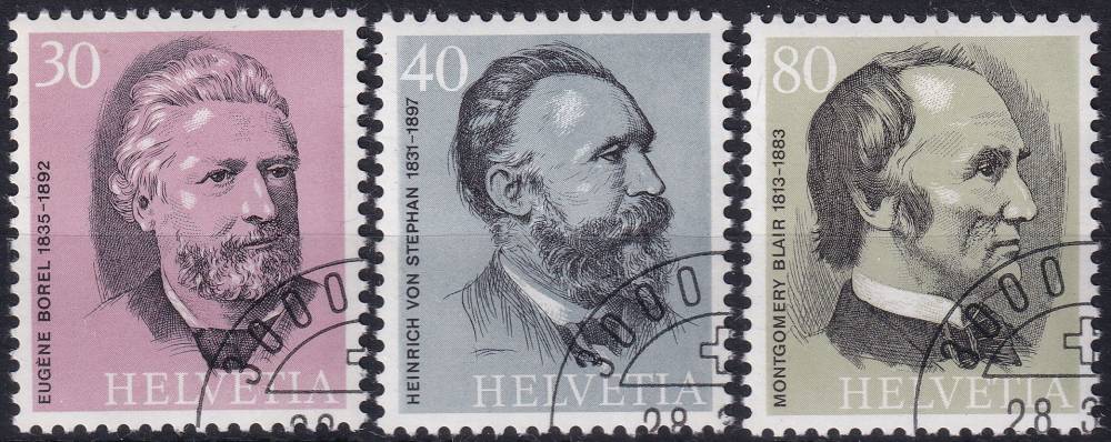 1974, Švýcarsko, 1024/1026, 100 let Světové poštovná unie (UPU) ⊙